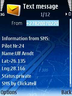 The JAVA J2ME Midlet feeds via SMS the Pilot Recovery status webpage